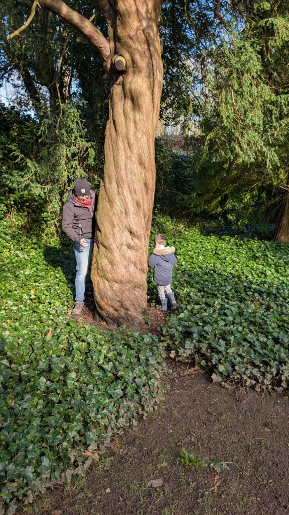 The wider site is great for simple games too. We play I Spy along the paths, bear or Gruffalo hunts in the woods, hide and seek (this is “our favourite tree” apparently!) and pooh sticks on the river.
