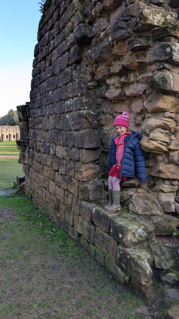 Fountains Abbey is surprisingly good with kids! You’d think because it has such ancient ruins that they wouldn’t be allowed to do anything and they’d be bored, but we find it the exact opposite. We love clambering over the ruins and imagining what the rooms would have looked like.